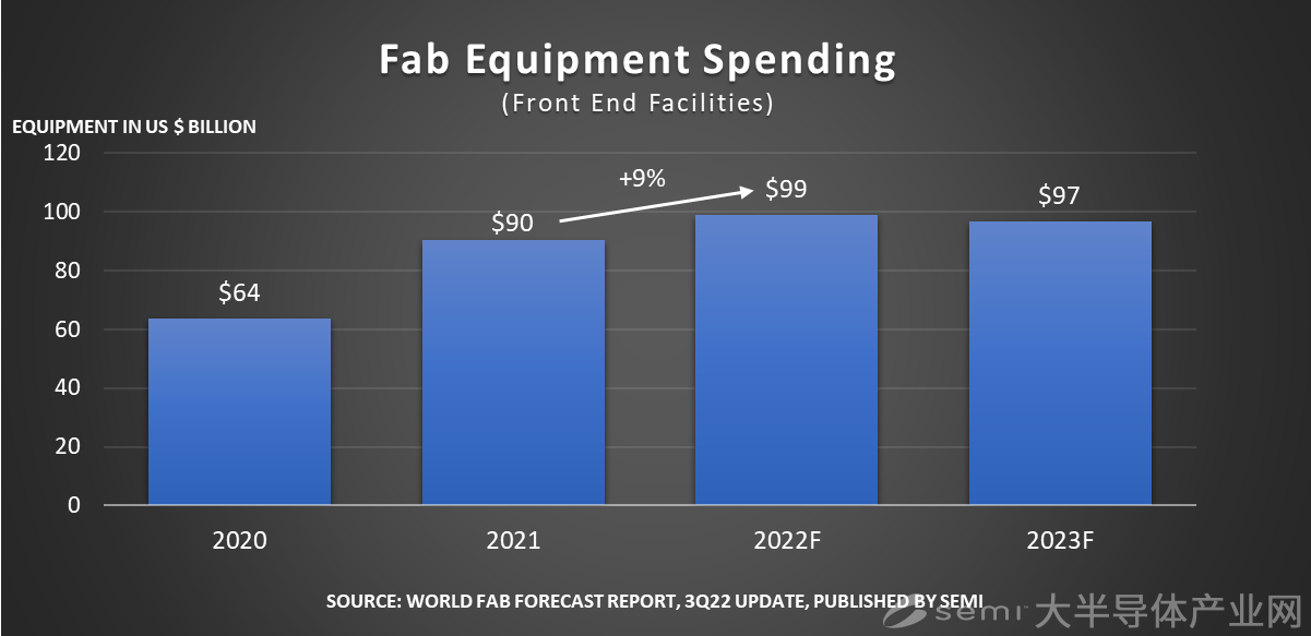 美國加州時間2022927日,SEMI在其最新的季度《世界晶圓廠預測報告》(World Fab Forecast)中宣布,2022年全球晶圓廠設備支出預計將同比增長約9%,達到990億美元的歷史新高。