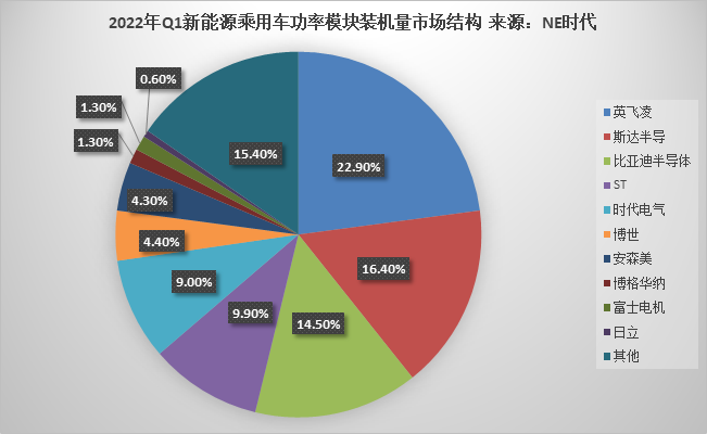 根據(jù)NE時(shí)代統(tǒng)計(jì)數(shù)據(jù),2022年Q1中國(guó)新能源乘用車功率模塊裝機(jī)量榜首仍是英飛凌,其以25.3萬(wàn)套位列行業(yè)第一,其后2-4名分別為斯達(dá)半導(dǎo)、比亞迪半導(dǎo)體、ST、時(shí)代電氣,裝機(jī)量分別為18.2萬(wàn)套、16.1萬(wàn)套、10.9萬(wàn)套、10萬(wàn)套。值得注意的是,斯達(dá)半導(dǎo)、比亞迪半導(dǎo)體及時(shí)代電氣三家本土企業(yè)三家本土企業(yè)同比增速分別為203.3%、209.6%、>500%,遠(yuǎn)高于英飛凌78.2%的同比增速;合計(jì)裝機(jī)量為44.3萬(wàn)套,合計(jì)市場(chǎng)份額已達(dá)39.9%。