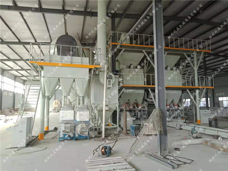 該套生產(chǎn)線位于開封市尉氏,整體設備除了這套保溫砂漿設備之外,還包括兩條全自動碼垛型普通砂漿生產(chǎn)線,由于輕質(zhì)保溫砂漿中的?;⒅榈囊姿樘匦?,所以在客戶選購時,我們會給客戶推薦這種滾筒式的粉體混合設備,在混合的過程中,可以減少玻化微珠的破損情況。