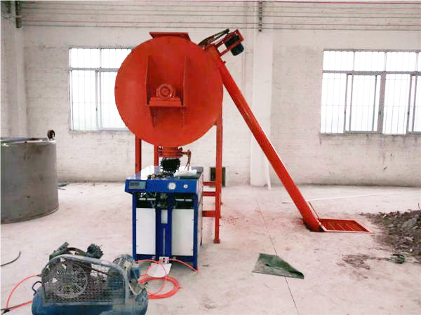 螺旋上料機(jī)是用于物料輸送的一種設(shè)備,主要和臥式螺帶干粉混合機(jī)配套,在搭配自動(dòng)包裝機(jī),組成最簡單的干粉砂漿生產(chǎn)線,如下圖所示: