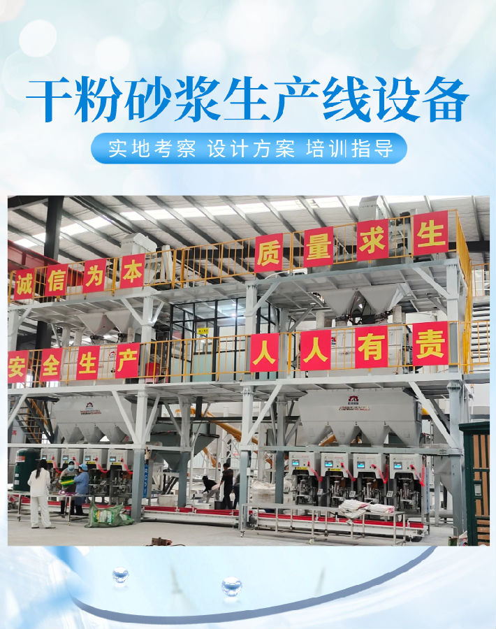 這套設備是安裝在湖北十堰,年產10萬噸全自動干粉砂漿設備摒棄傳統(tǒng)地面配料形式,采用塔式布局頂部配料模式,大幅減少物料配比輸送時間、提高生產效率、降低生產成本。全自動干粉砂漿設備主要包含儲存系統(tǒng)、待混系統(tǒng)、配料系統(tǒng)、混合攪拌系統(tǒng)、包裝系統(tǒng)、除塵系統(tǒng)、控制系統(tǒng),客戶可根據(jù)自身需求增加碼垛系統(tǒng)和散裝系統(tǒng)。