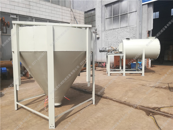 本套設(shè)備除了包含干粉混合機(jī)之外,還包含螺旋上料機(jī),成品提升機(jī)以及直徑為1.8米的成品倉(cāng),用于暫存成品物料,壓縮設(shè)備批次之間的生產(chǎn)間隔。