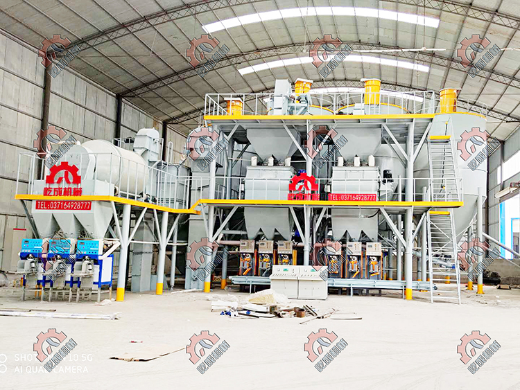 干粉砂漿綜合型生產(chǎn)線整體可分為3套設備,其中如我們上述所說的輕質物料之外,針對不同的砂漿產(chǎn)品會使用2條或2條以上不同的生產(chǎn)線,我們就拿鼎興建材的綜合型生產(chǎn)線來說。
